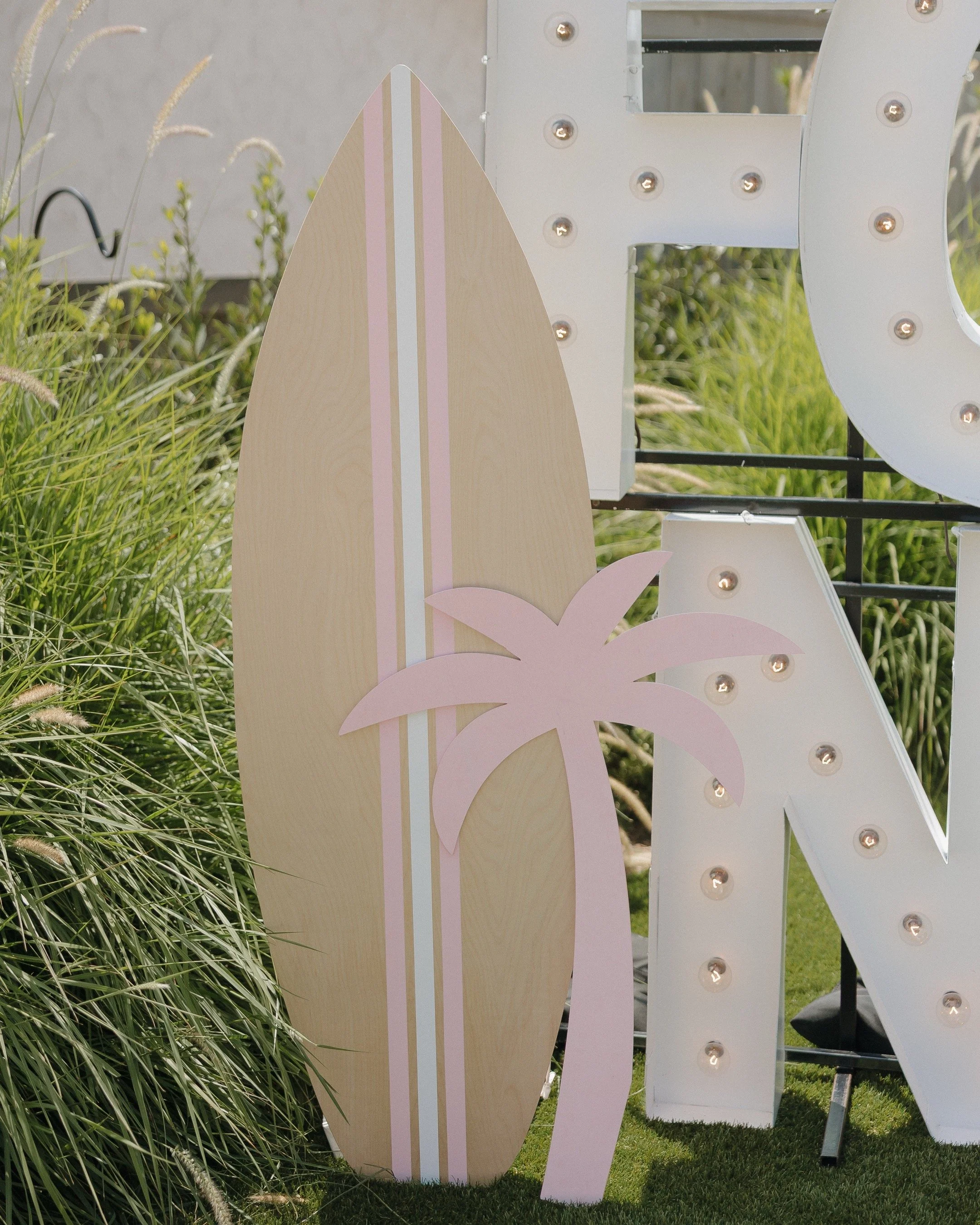 Dried Floral Piece | $75 Rent Me Wooden Dinosaur | $40 Rent Me Wooden Sun | $50 Rent Me Wooden Blue Striped Surfboard | $50 Rent Me Wooden Shell | $50 Rent Me Ice Cream Cone | $50 Rent Me Painted Surfboard | $50 Rent Me Wooden Pink Striped Surfboard | $50 Rent Me